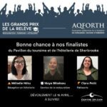 Félicitations à Mélodie Hétu du programme Réception en hôtellerie, à Maya Bilodeau du programme Service de la restauration, et à Clara Petit du programme Pâtisserie, trois...