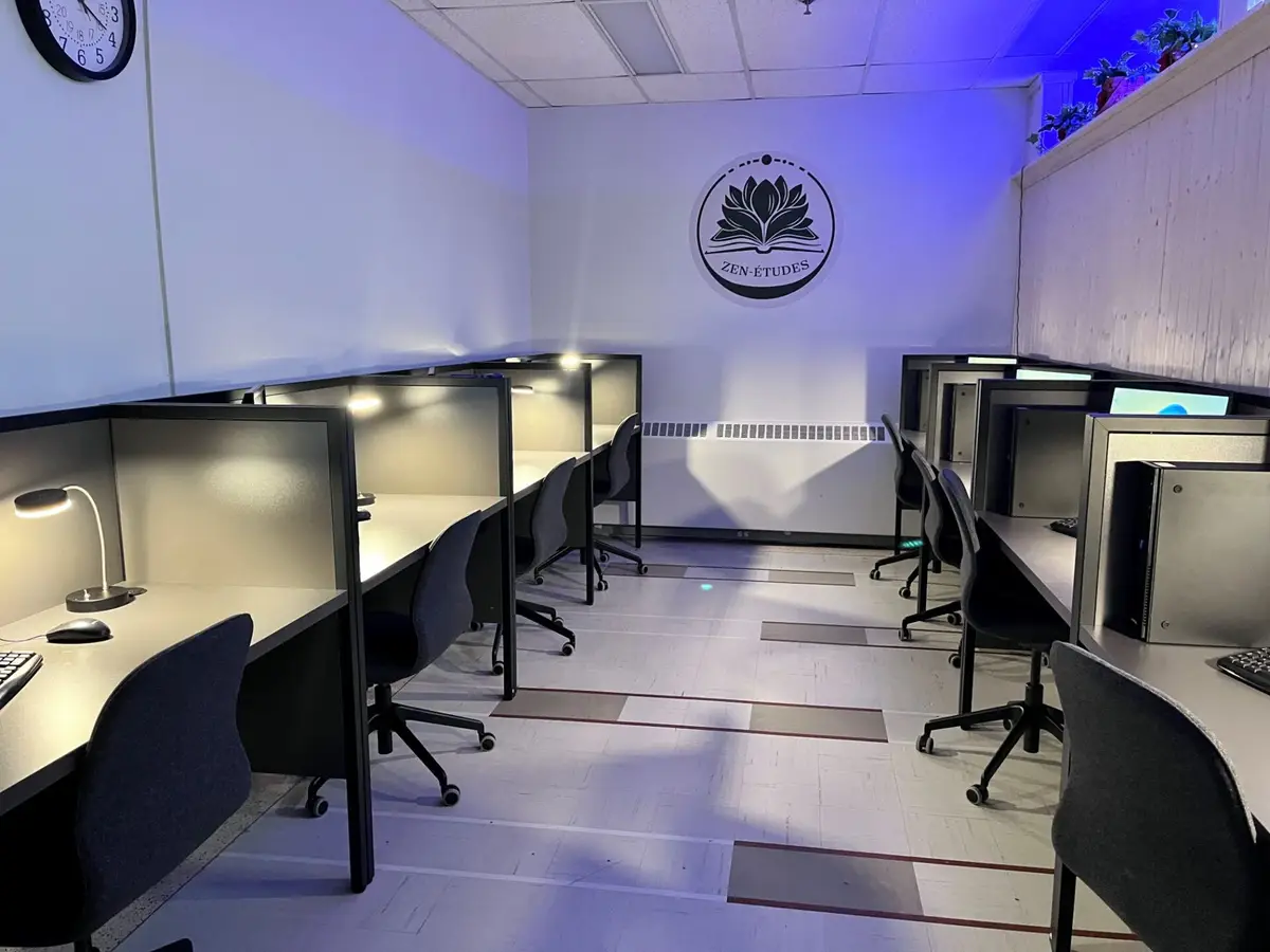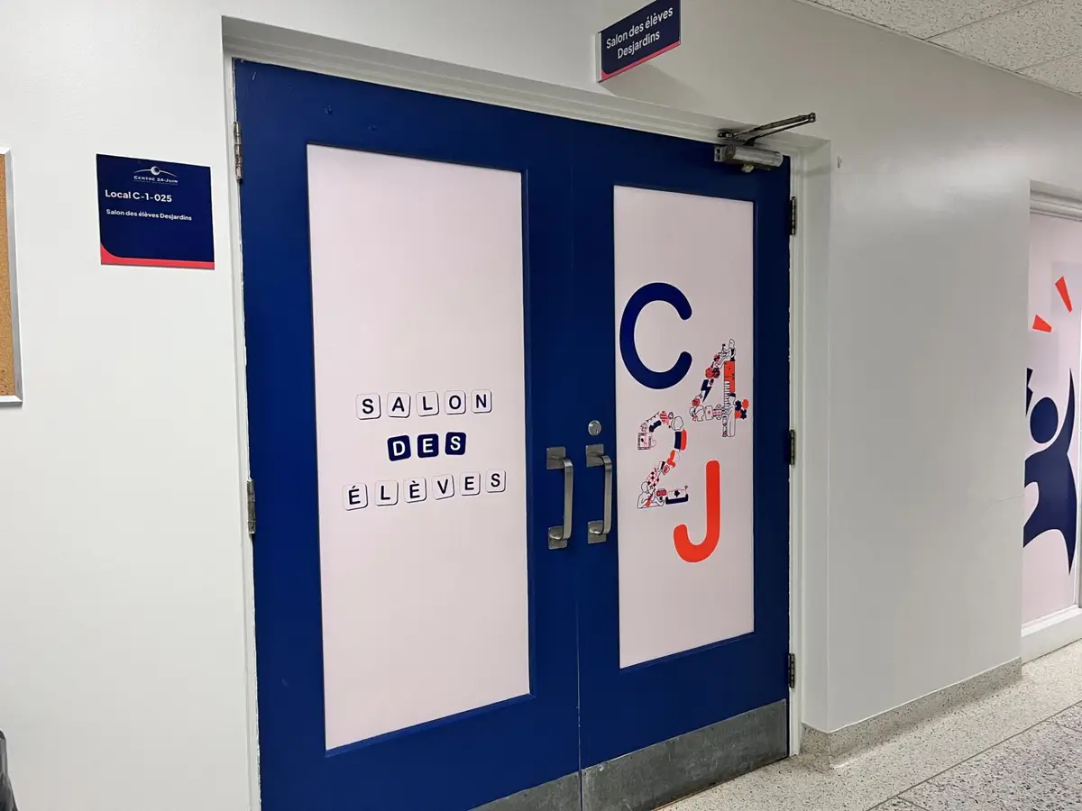 De plus, la participation et l’engagement remarquables d’élèves et d’enseignants du C24J ont fait que ces locaux sont réellement à notre image. Entre autres, des élèves de charpenterie-menuiserie ont construit le podium et installé le lambris au local Zen-études, ceux d’entretien général d’immeubles ont peint les murs du salon des élèves et teint le lambris du local, des élèves d’infographie ont habillé avec beaucoup de créativité les murs et des tables des deux espaces, un élève en santé, assistance et et soins infirmiers a fabriqué les coussins du local Zen-études, etc.