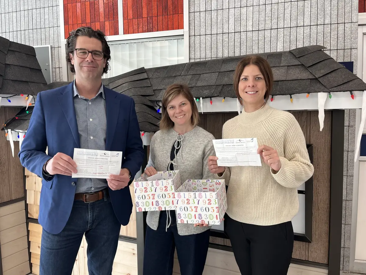 Sur la photo : Eric Arseneault, directeur du Centre de formation professionnelle 24-Juin, Annie-Claude Blais, agente de développement, et Nadia Verpaelst-Claisse, vice-présidente de la Fondation du Centre 24-Juin, avec les formulaires tirés au hasard. Merci à la fondation!