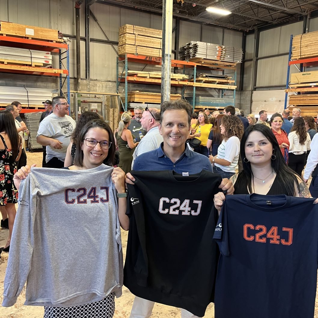 Une enseignante en infographie, Myriam Boivin, a proposé de créer de nouveaux chandails à l’effigie du C24J pour les ajouter dans notre boutique en ligne. Ils ont fait fureur lors de leur dévoilement à l’assemblée générale de tout le personnel! Parions que tu croiseras beaucoup de membres de nos équipes et d’élèves les portant partout en ville…. Tu veux en commander? Visite la Boutique en ligne.