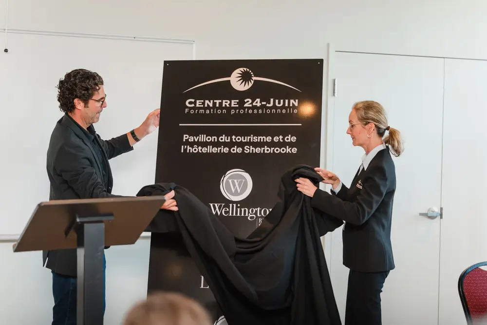 Il y avait de la frénésie aujourd’hui à notre pavillon du centre-ville qui se nomme désormais le Pavillon du tourisme et de l’hôtellerie de Sherbrooke! Les services offerts au public : le resto, la cafétéria et le comptoir de vente, changent de noms également et deviennent Le Wellington | resto-école, Le Well24 | bistro et Wellington | comptoir saveurs.