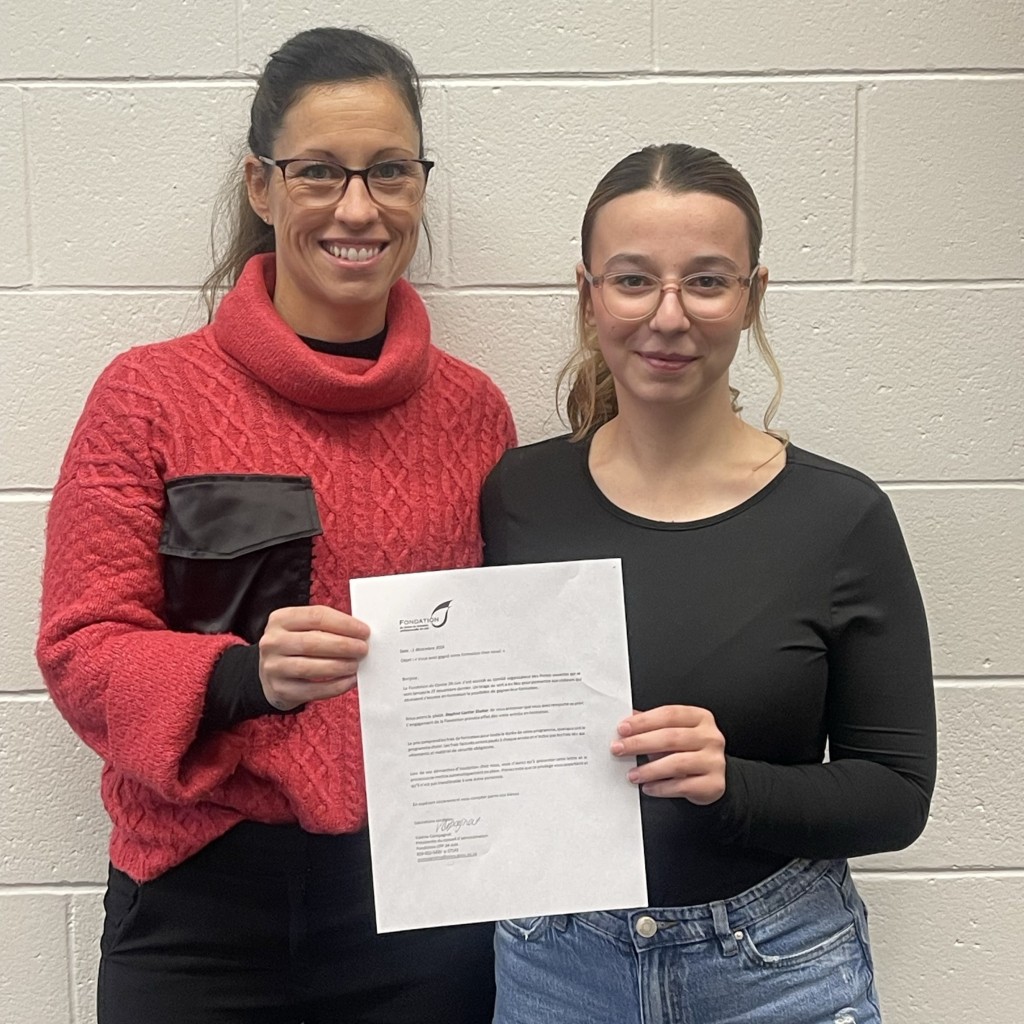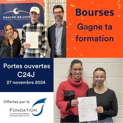 Toutes nos félicitations à Elliot Perreault-Lacasse et Daphné Carrier Shaker qui ont remporté le concours « Gagne ta formation » se déroulant pendant nos portes ouvertes le 27 novembre dernier! Deux bourses d’études sont offertes par la Fondation du Centre 24-Juin.